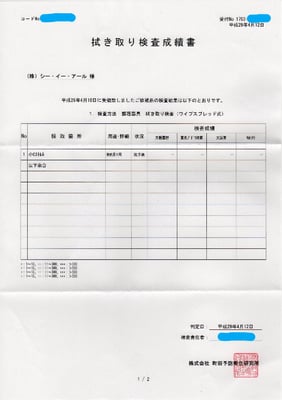 <検査項目>大腸菌群・黄色ブドウ球菌・大腸菌・サルモレラ・細菌数